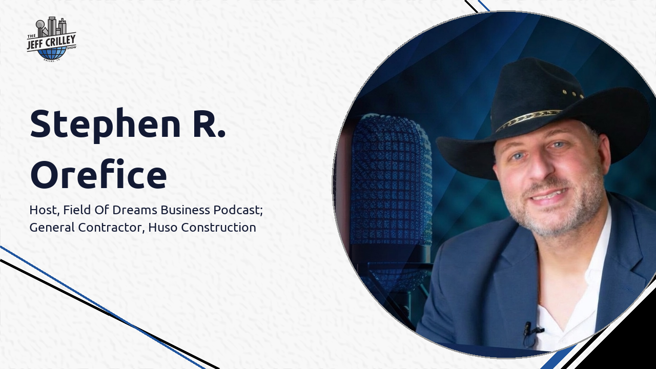 Jeff Crilley sits down with Stephen R. Orefice, host of the Field of Dreams Business Podcast and general contractor at Huso Construction, for a wide-ranging conversation about sales grit, baseball coaching, and building a business from scratch in Dallas-Fort Worth. Stephen traces his career from landing an ad sales job at Fox Television in New York City right out of college through door-to-door sales at W.B. Mason, Verizon retail, and eventually into the construction world—where a Facebook message from a Christian family-owned window and door company changed his trajectory. After the pandemic, he packed his Dodge Challenger and two dogs and drove to Texas, where he merged with the Uso family's general contracting firm to form Huso Construction, now handling everything from residential remodels to heavy commercial projects out of Northlake. Stephen also shares fifteen years of youth baseball coaching experience, including a memorable AAU national championship win over the famous Toms River team, and explains how the catcher's mentality shaped his leadership style on and off the field. The episode closes with Stephen's candid reflections on hitting rock bottom twice, leaning on faith and family, and betting on himself for a third time.